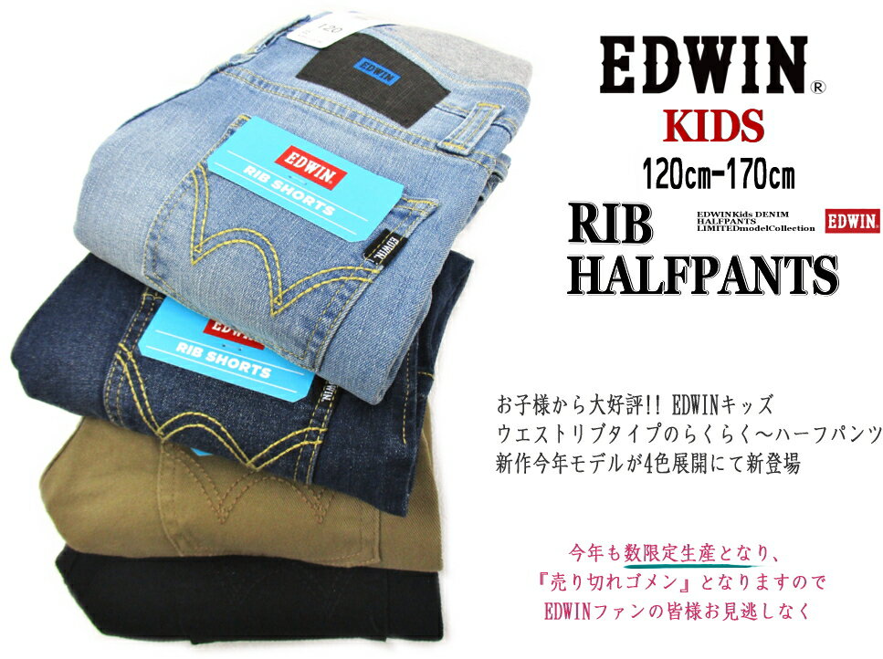 ■EDWIN (エドウィン)■ 大人気!!EDWINキッズ リブウエストデニムハーフパンツが販売開始です!! 昨年モデル販売分は「あっ!!」と言う間に 完売してしまい、売り切れ後(着せたい頃)に お問い合わせが殺到した ハーフ丈パンツになります。