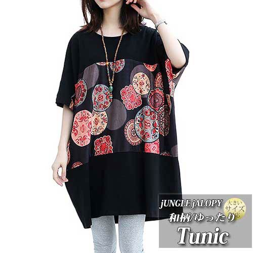 あす楽 即納 大きいサイズ レディース 和柄 チュニック 半袖 トップス LL-4L セクシー ビッグサイズ ボーイッシュ 体型カバー 着痩せ トレンド 大人セレブ セレカジ 海外セレブ 韓国ファッション 夏新作