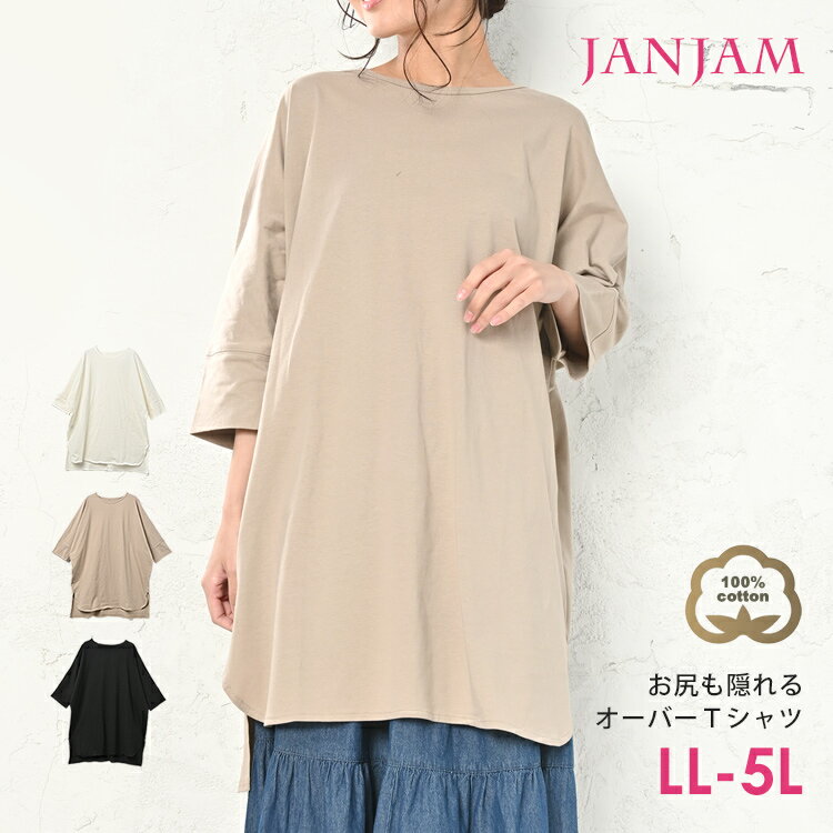 メール便対応 大きいサイズ レディース ロングTシャツ 7分袖 チュニック丈 ラウンドネック ステップヘム トップス cotton100 LL-3L/4L-5L ゆったりサイズ ぽっちゃり女子 プラスサイズ