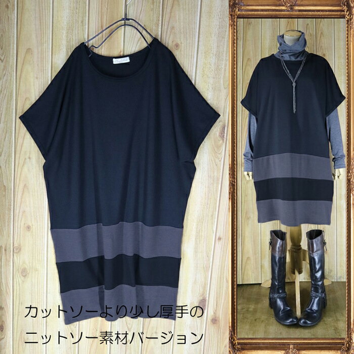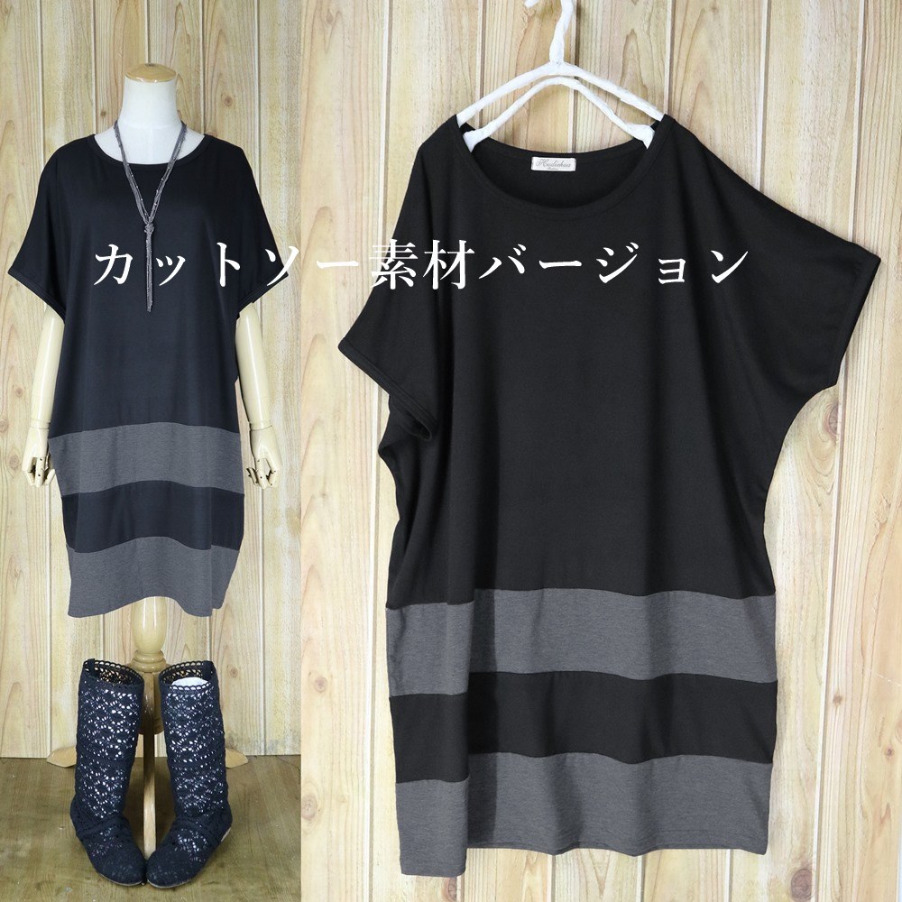 大きいサイズ チュニック ワンピー 春 ボーダー 配色 オーバーサイズでゆるっと着れる かわいい チュニック ワンピース ドルマン バイカラー レディース ワンピース 切り替え 配色 メール便【送料無料】黒×チャコールグレー