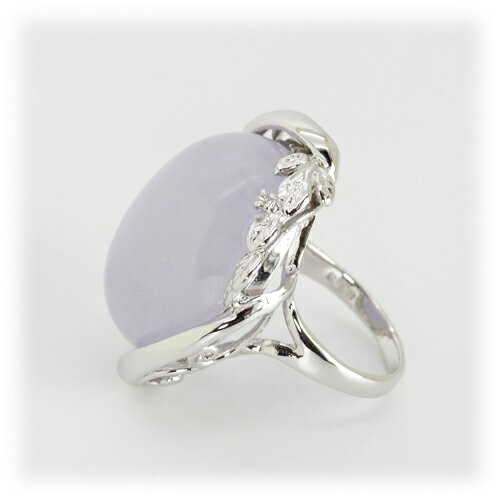 大粒でボリュームのあるカボションカットの ラベンダー翡翠をリーフで優しさく包み込んだリングです。